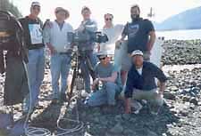 Friday 26 May 2000 Another beautiful day in the neighborhood. We are told repeatedly we brought the good weather with us. We drive out of town in the other direction. The road ends soon at the Orca Lodge, possible location for our interviews. As we arrive, we see a bald eagle perched on a post fairly nearby. Randy is fascinated by these birds, as we all are. After all, they are our national symbol and they carry the mail (well, they are the logo of the Postal Service). We hurry to set up for a shot. Just as we are seconds away from being ready to roll, the eagle turns to Randy, winks derisively, and flies away. He is crushed that we have missed the shot and is sure we would have been ready sooner if we had only been shooting film, instead of video, even a cool format like HDTV. The decision to go HD was made over a month before, so I think "Get over it, Randy." But I vow to get him a great eagle shot before we leave Alaska. Otherwise he will clearly torment me for years to come. We cruise by the elementary school just as students are being let out for the summer. Kat obtains parental permission for us to set up portrait shots of kids, in singles, pairs, and trios. Randy uses the Fart Machine to good effect with some children, but others just won't crack a smile. I remind him of a technique he's used effectively in our long history together, and it works well here: "Okay, look right into the camera, and smile... don't smile... now smile, smile, smile... don't smile!!" Never fails to get a laugh or fun reaction. More shooting on Main Street, this time looking especially for interesting faces. Many townspeople have seen us around by then. Many come up to chat or ask questions or tell us stories. I am taken to meet Florissa and Altana, our interview subjects, and to scout their offices. After lunch we charter a boat for a couple of hours and scoot out onto the Orca Inlet toward Prince William Sound for some shots of the town from the water. We also find some birds and a few sea otters playing in the water, one with a baby on its belly! Great shots of the wildlife, sun sparkling on the water, mountains, boats, islands, etc. A few clouds poke above the horizon, but just for photographic purposes, and they disappear as soon as we get our shots. A gorgeous day to be out on the water. Back to the Reluctant Fisherman. Greg and his crew -- Dave and Chris -- have arrived on the afternoon plane from Anchorage with lighting and grip gear, along with Gary Smith, who runs RANA (the Rural Alaska Native Adult program of Alaska Pacific University), the Internet distance learning program with which Altana and Florissa are involved. We have dinner together, Randy tells jokes (what else?) and we all get acquainted. |