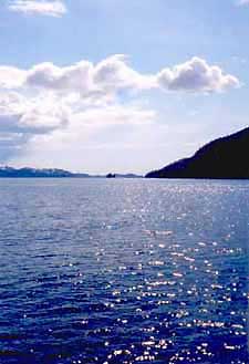 glistening on the water in the Orca Inlet The harbor
